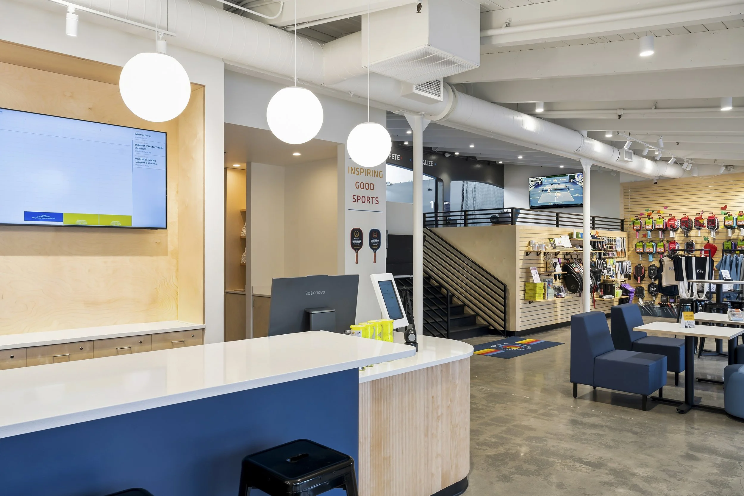 Beyond the courts, the design supports a more social, elevated experience. A flexible viewing space doubles as a venue for corporate events, while a dedicated bar, lounge, and retail area invite guests to gather, connect, and gear up.