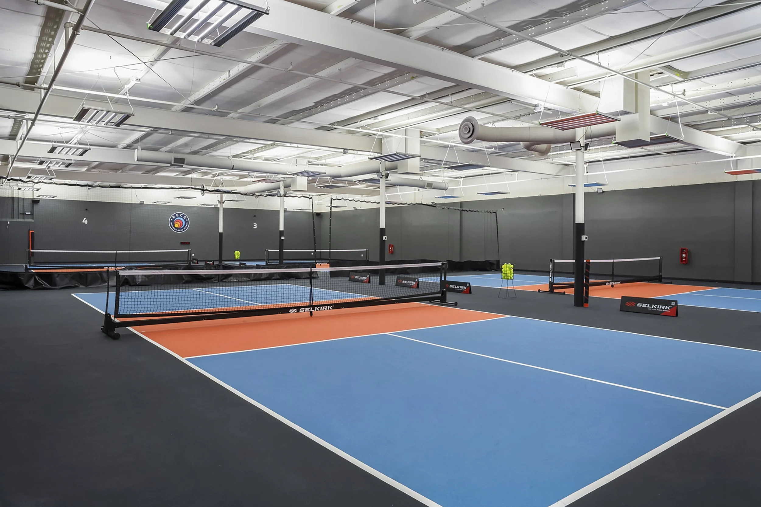 SUM transformed an outdated 11,000-square-foot office and warehouse into a premier boutique pickleball destination. Reimagining the building’s industrial footprint allowed the team to create four professional-grade indoor courts within a highly efficient, thoughtfully planned layout.