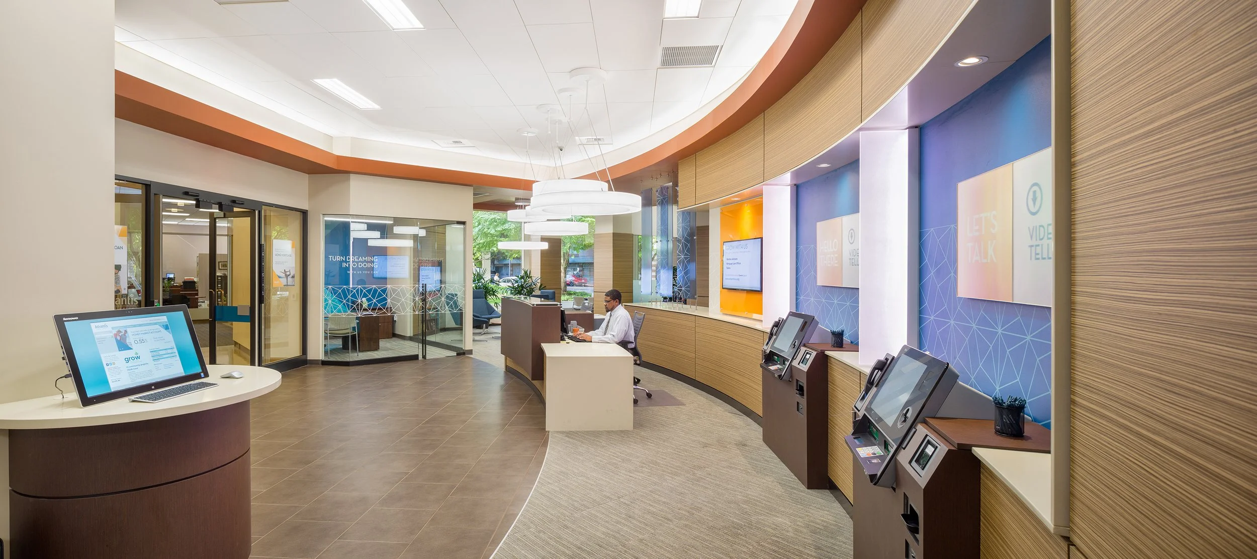 Dynamic lobby layouts, bold color palettes, and layered textures intuitively guide visitors through the space, while thoughtful lighting design encourages both productivity and play. Integrated banking technology, like interactive teller machines, enhances convenience and member autonomy, while flexible staff zones support deeper personal connections.