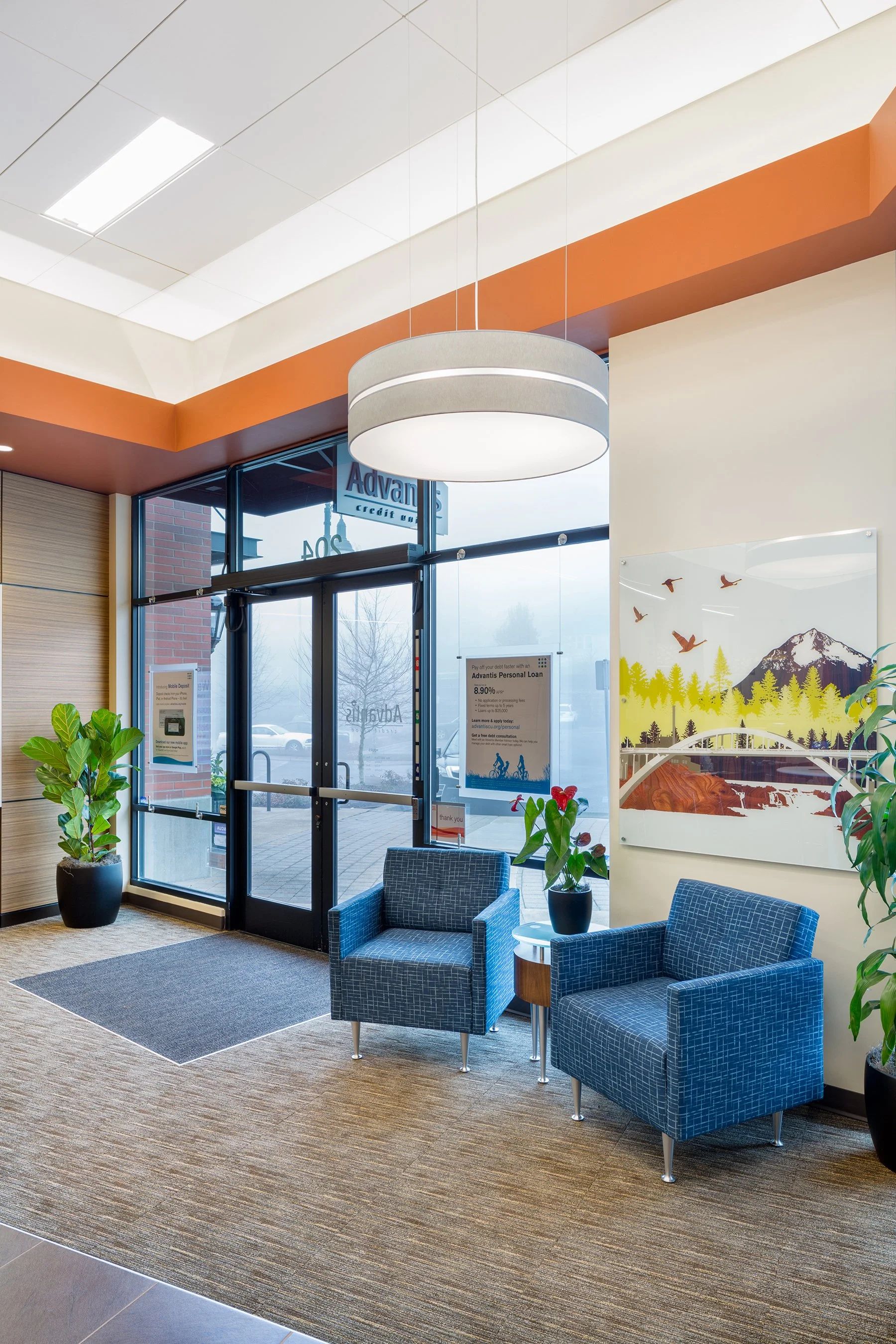 SUM has partnered with Rivermark Community Credit Union (formerly Advantis Credit Union) for over a decade to reimagine their branches as vibrant, people-centered spaces that reflect the brand’s values and vision. Together, we’ve transformed dated, enclosed environments into open, light-filled spaces that feel welcoming, modern, and energizing.